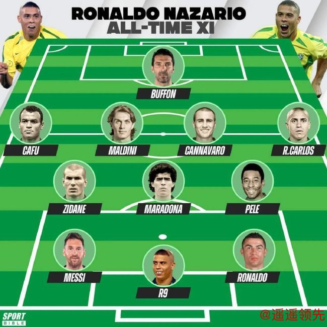 巴西传奇前锋罗纳尔多评选出了自己心中的最佳11人阵容。
